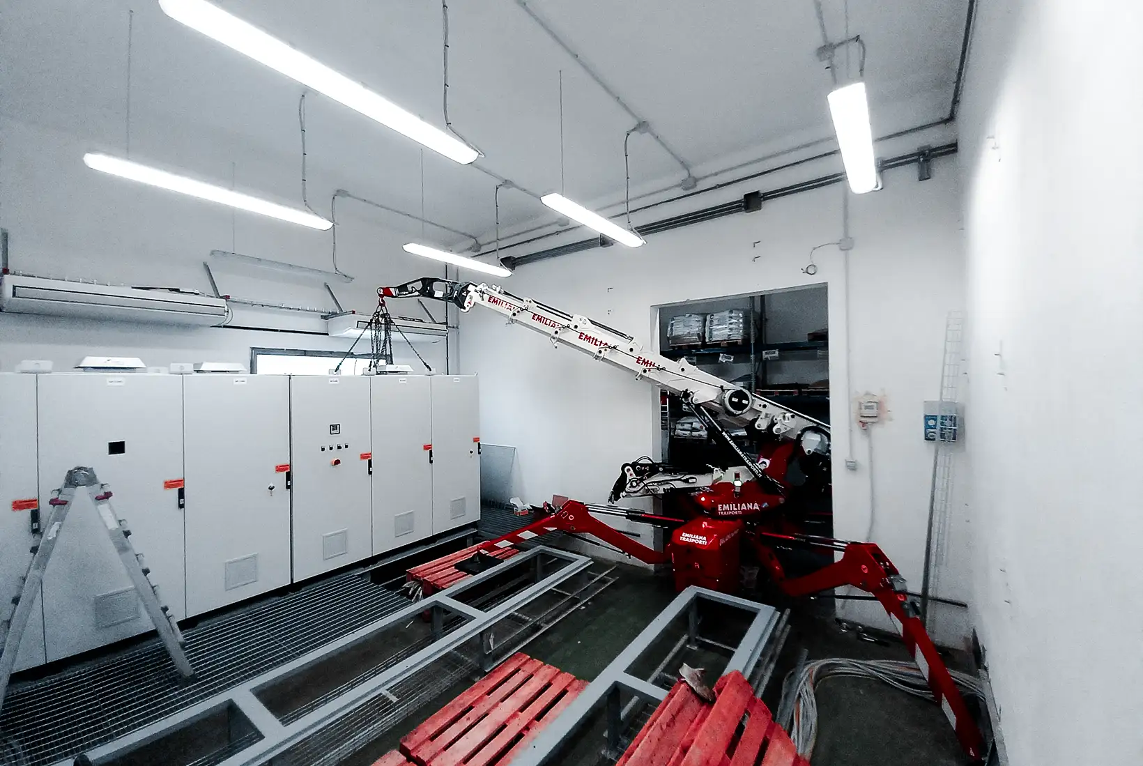 Sì, la minigru elettrica è progettata per lavorare in ambienti chiusi grazie a zero emissioni e bassa rumorosità.
